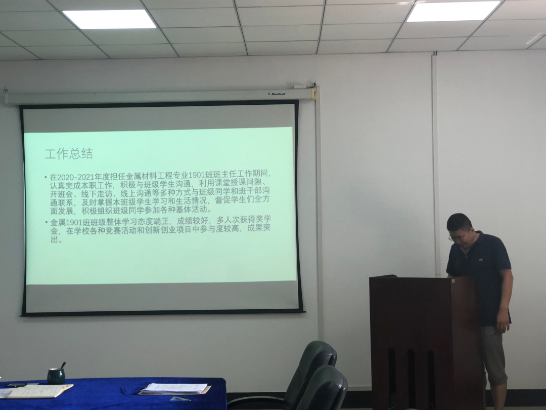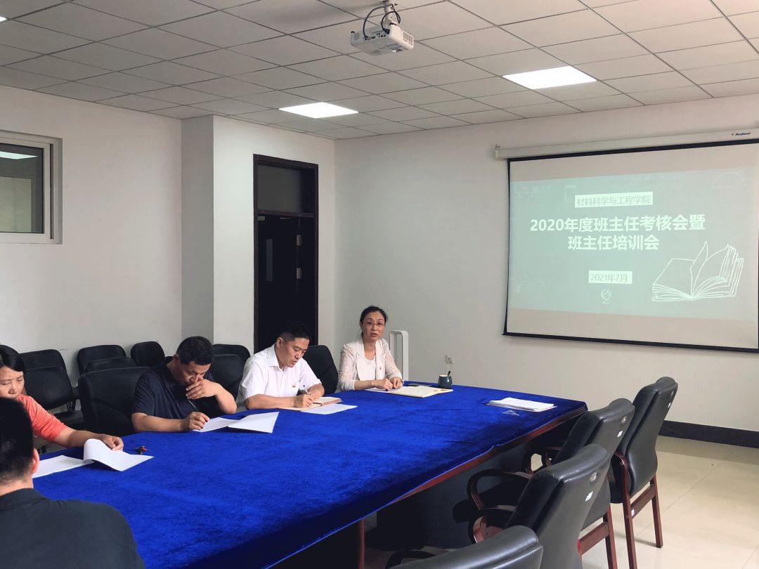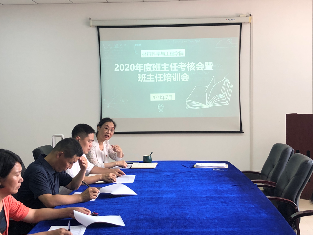 为加强我院班主任队伍建设,规范管理、科学评价班主任工作,充分发挥班主任在大学生思想政治教育与学业指导中的作用,根据沈阳航空航天大学党委本科学生工作部 思政〔2021〕7号文件精神,yl7703永利于2021年7月19日在机械馆418召开2020-2021年度班主任考核会暨班主任培训会。本次考核采取班主任自评、学生满意度测评、学院现场考核的方式进行。yl7703永利党委副书记李丽娜主持本次会议,材料学院领导班子及2019级、2020级、2021级班主任及辅导员出席了此次会议。