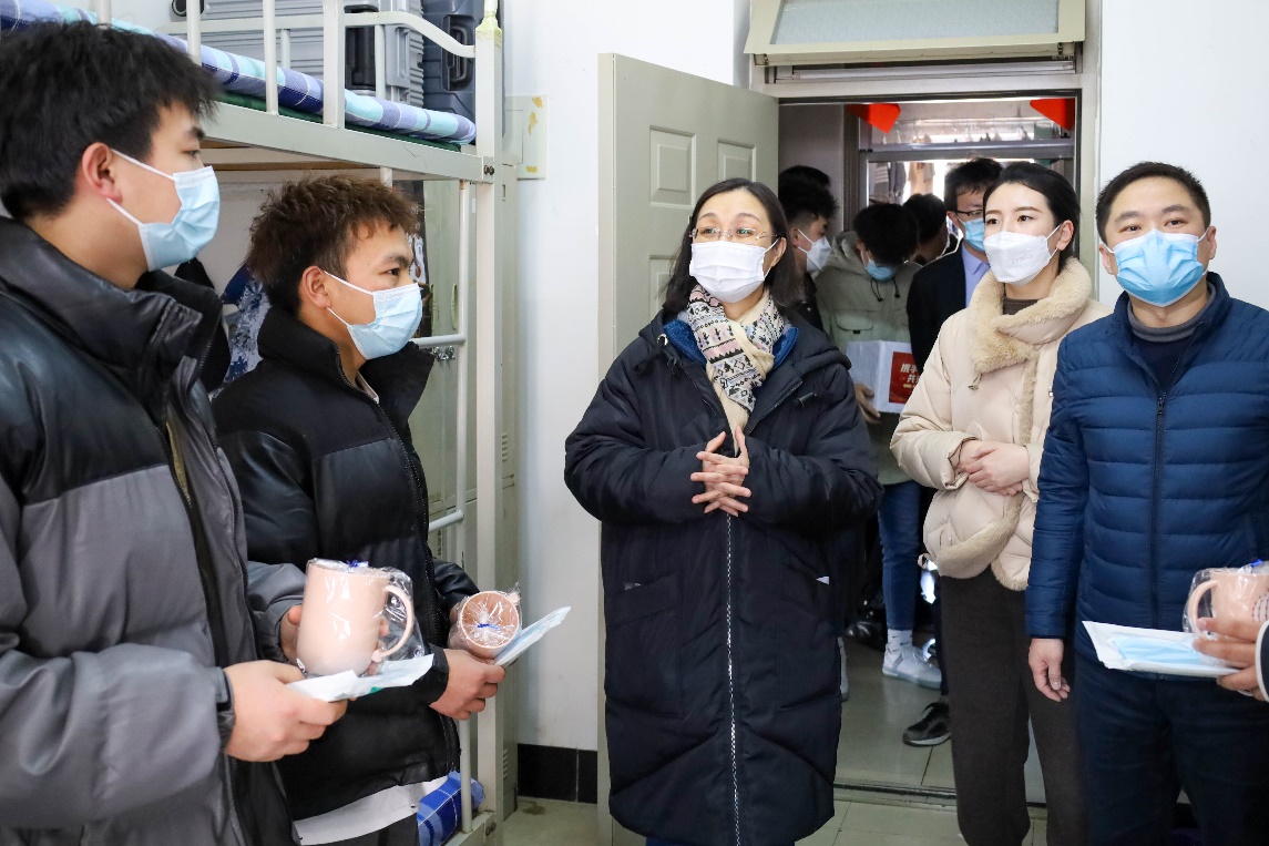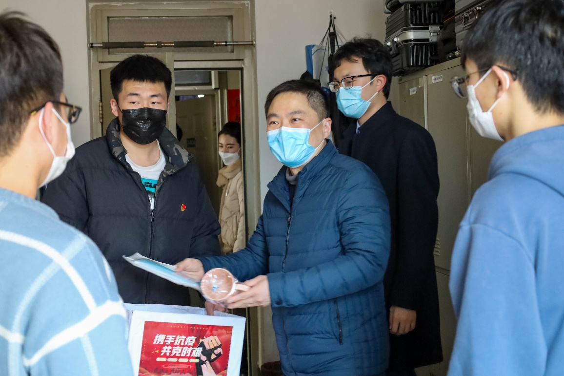 路楠书记一行每到一处,首先向学生们表达了学院的关心与问候,同时也仔细了解学生封校期间的身心状况等,鼓励同学们调整心态,积极适应疫情时期的学习生活;并再三强调:要严格遵守常态化疫情防控期间注意事项、宿舍管理的安全制度与规定;要正确面对,深刻领会国家、学校在特殊时期所提的特殊要求、所采取的特殊管理等。要自觉坚持每日打卡,并注意保持宿舍卫生整洁,如有异常情况,要及时报告,希望我院师生一起携手抗疫 共克时艰。