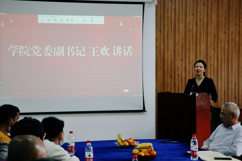 王欢代表学院感谢家长对学院工作的支持与配合,向家长们介绍学院在学生管理和学风建设等方面的具体做法,倡议家长与学院携手助力学生成长。