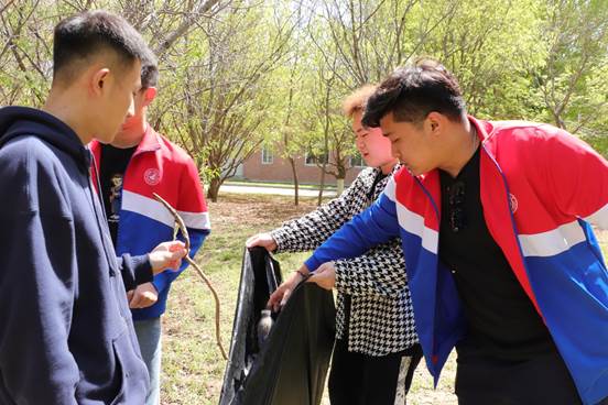 在此次的公益劳动中,各年级辅导员、学生党员、学生干部积极带头,同学们热情高涨,不怕苦、不怕累、不怕脏,用手将草地上的大树枝、烟头等杂物一一挑出,装入垃圾袋中。在劳动的过程中,不放过任何一个角落。