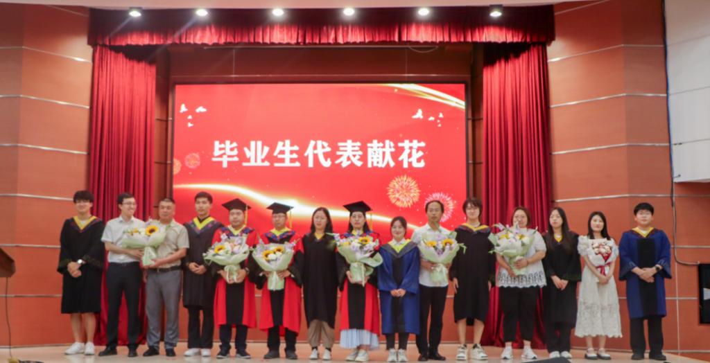 本科毕业生代表金福帅和研究生毕业生代表郝帅发言。他们向同学们表达了真挚的祝福,表达了对学校、学院的不舍和感激之情,同时希望同学们能带着理想、带着祝福跃入人海,勇敢踏浪。