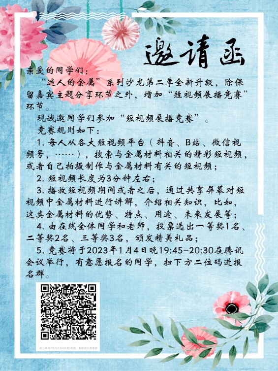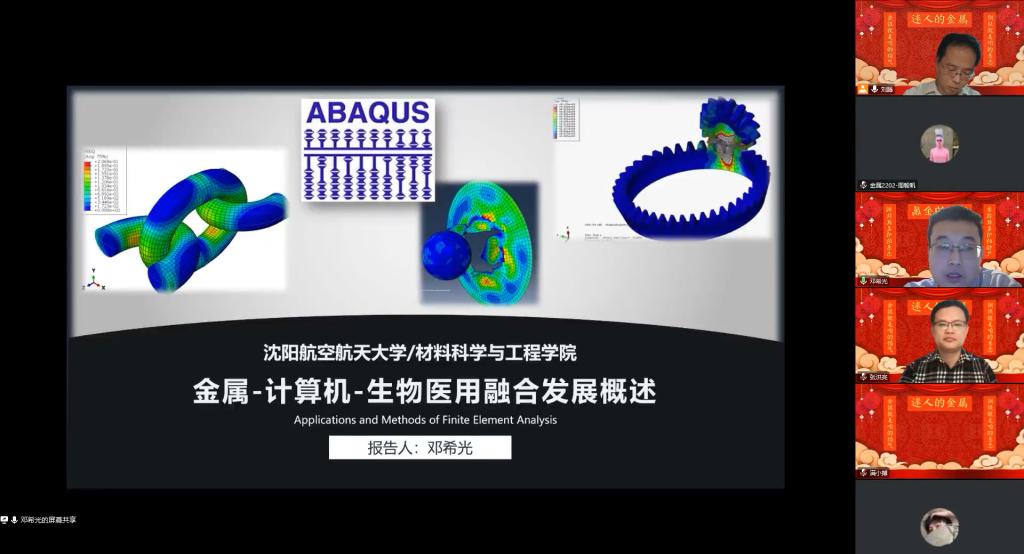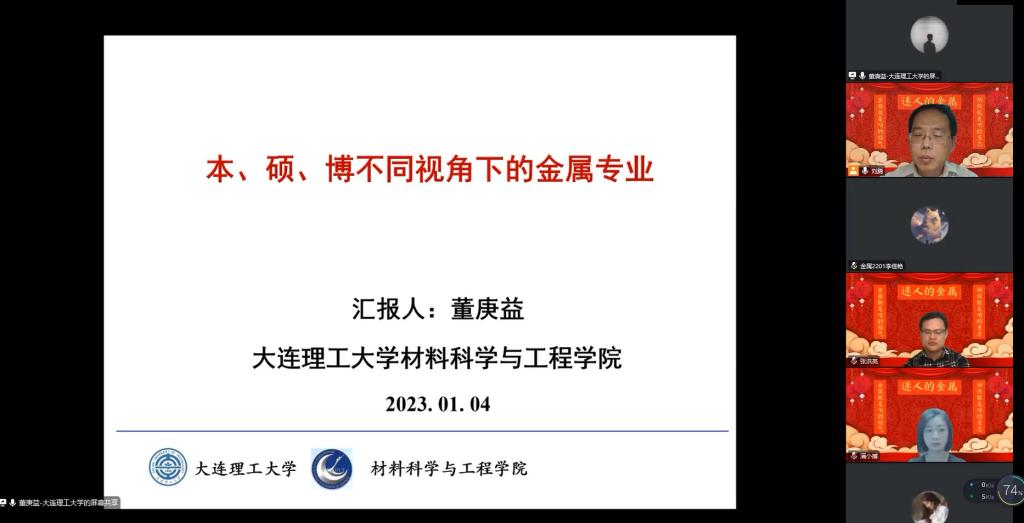 1月4日,yl7703永利金属材料工程专业在线上召开新学年《迷人的金属》系列沙龙讲座第一期,学院领导、专业教师和2021级学生参加,沙龙由金属材料工程专业教师党支部书记刘腾主持。