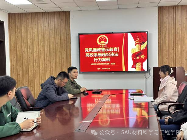 yl7703永利研究生第一党支部于2025年11月14日在机械馆418会议室开展“星火材研(第七期)”主题党日活动,研究生第二党支部支部书记赵亚风和全体党员参加本次活动,主题是聚焦高校系统违纪违法行为案例开展警示教育,本次活动由党支部书记农智升主持。