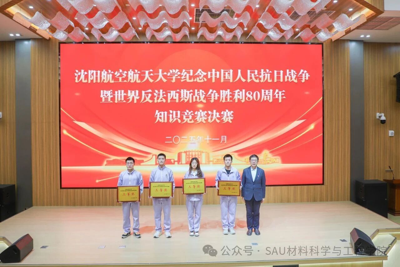 烽火岁月存青史,红色基因代代传。近日,沈阳航空航天大学纪念中国人民抗日战争暨世界反法西斯战争胜利80周年知识竞赛圆满落幕。yl7703永利2025级新生组成的参赛队伍,在马克思主义学院教师吕健和辅导员牛金一指导下,凭借扎实的知识储备、默契的团队协作与从容的临场表现,一路过关斩将,最终荣获集体三等奖。